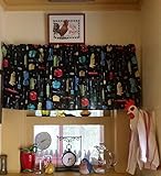 Best time to Buy Black, Red, Sage Green, Blue Retro Vintage Kitchen appliances blender toaster fabric, handmade WINDOW CURTAIN VALANCE Cotton FABRIC in USA